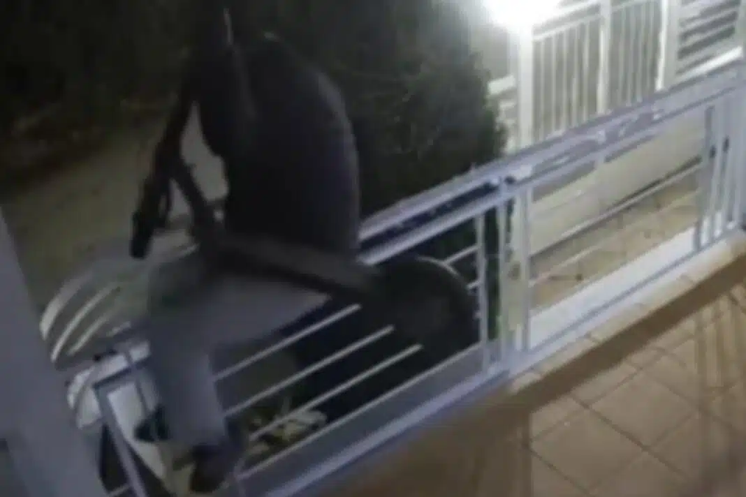 Όπως φαίνεται από το βιντεοληπτικό υλικό που ήρθε στη δημοσιότητα, ο κλέφτης, αφού αποσπά το πατίνι, στην προσπάθεια του να διαφύγει, πηδώντας από τα κάγκελα του μπαλκονιού, πέφτει προς τα πίσω, με το πατίνι να τον πλακώνει.