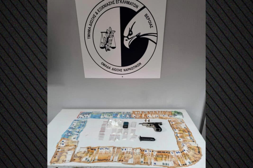 Σε έρευνα στο σπίτι του βρέθηκαν και κατασχέθηκαν ένα πιστόλι κρότου και 11.310 ευρώ.