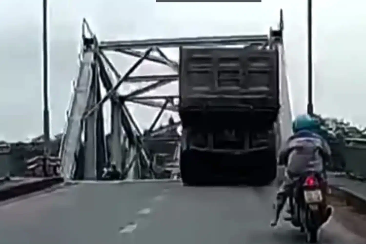 Τα πλάνα που κατέγραψε η κάμερα στο ταμπλό ενός αυτοκινήτου δείχνουν τη σοκαριστική στιγμή της κατάρρευσης της γέφυρας Phong Chau εχθές, Δευτέρα.