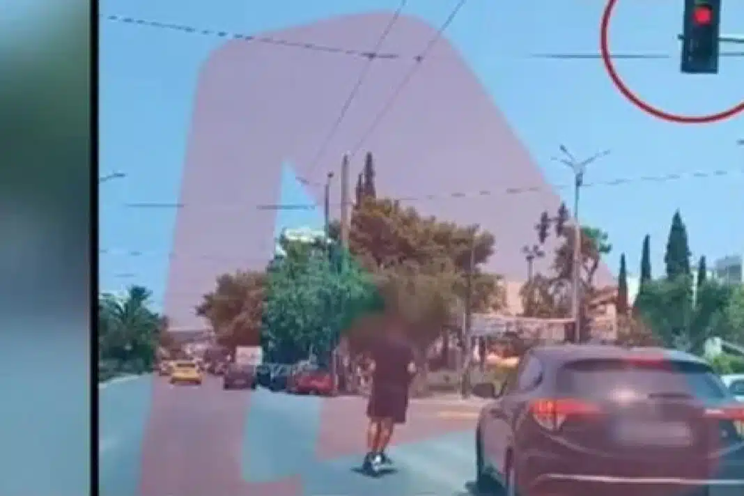 Βίντεο-ντοκουμέντο: Η στιγμή που νεαροί με πατίνι περνούν με κόκκινο φανάρι στην Καλλιθέα