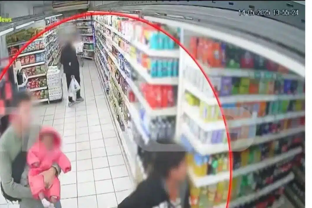 Στα πλάνα του «Live News» φαίνεται η είσοδός τους στο κατάστημα. Η στιγμή που η γιαγιά δίνει την εγγονή της στα χέρια του άντρα που τη συνόδευε και στη συνέχεια η γιαγιά να ανεβαίνει και πάλι στον πάνω όροφο του σούπερ μάρκετ και ο νεαρός να παίρνει ψύχραιμα όπως φαίνεται τον δρόμο της εξόδου.