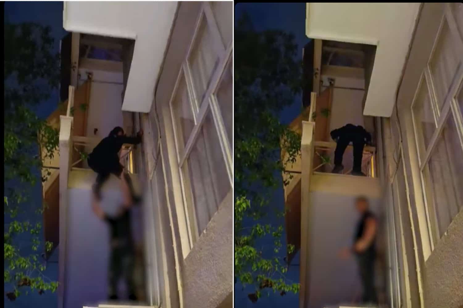 Οι αστυνομικοί και οι γείτονες έχουν συγκεντρωθεί έξω από την πολυκατοικία και φωνάζουν στο παιδί: «Κάνε υπομονή, θα σε βοηθήσουμε». Αμέσως, όπως μπορείτε να δείτε, μια γυναίκα αστυνομικός με τη βοήθεια συναδέλφου της σκαρφαλώνει στο μπαλκόνι και μπαίνει μέσα στο διαμέρισμα, διασώζοντας το παιδάκι. Ακολουθούν χειροκροτήματα από τους γείτονες.