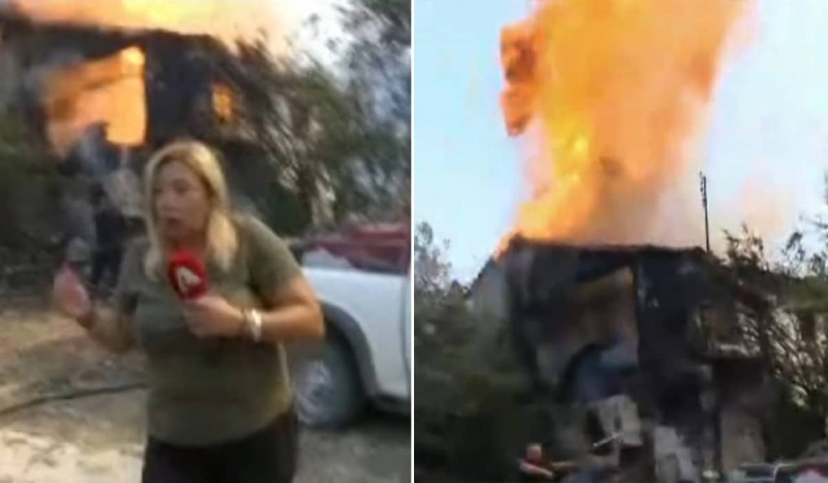 Την ώρα που κάλυπτε το ρεπορτάζ για τις φωτιές, στο χωριό Άβαντας, έγινε μία μεγάλη έκρηξη πίσω της, στο σπίτι που καιγόταν.
