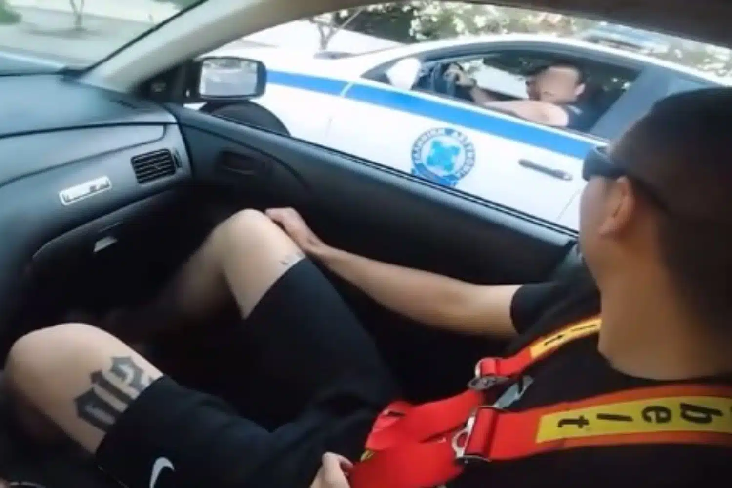 Όπως φαίνεται, ο αστυνομικός πλησιάζει με το περιπολικό το αυτοκίνητο του νεαρού, κατεβάζει το τζάμι και του πιάνει κουβέντα για το αυτοκίνητο.