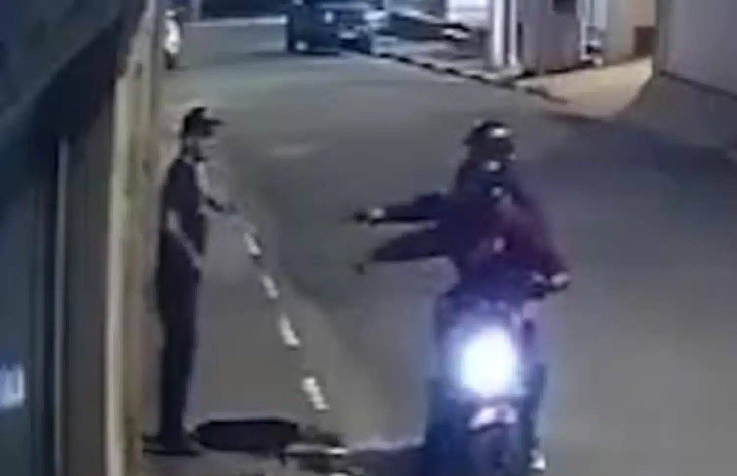 Στο βίντεο φαίνεται ο άντρας, ο οποίος αποχαιρετά έναν συνάδελφό του, να γίνεται στόχος δύο ληστών που επέβαιναν πάνω σε μοτοσυκλέτα. Τον ακινητοποιούν υπό την απειλή όπλου.