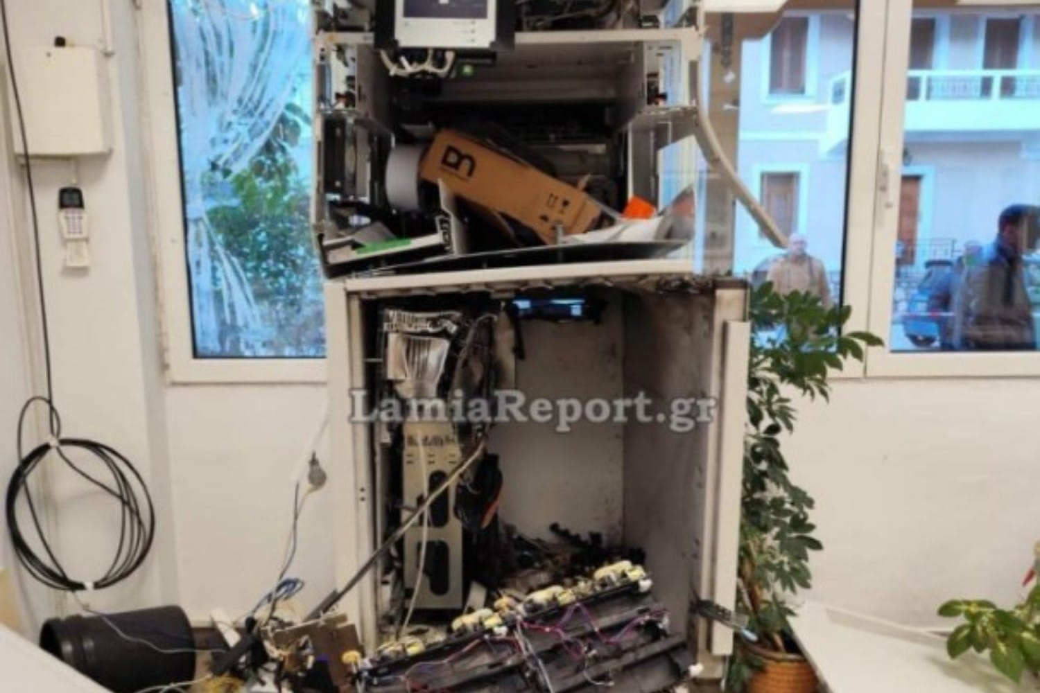 Από την έκρηξη το ΑΤΜ καταστράφηκε ολοσχερώς, ενώ το κατάστημα ΚΕΠ υπέστη σοβαρές υλικές ζημιές.