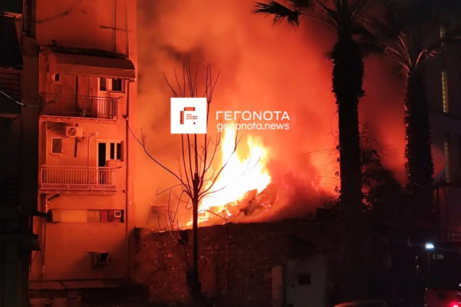 Σύμφωνα με το gegonota.news, οι πυροσβεστικές δυνάμεις επιχειρούν για τον περιορισμό της φωτιάς, προκειμένου να αποτραπεί η εξάπλωσή της σε παρακείμενα κτίρια.