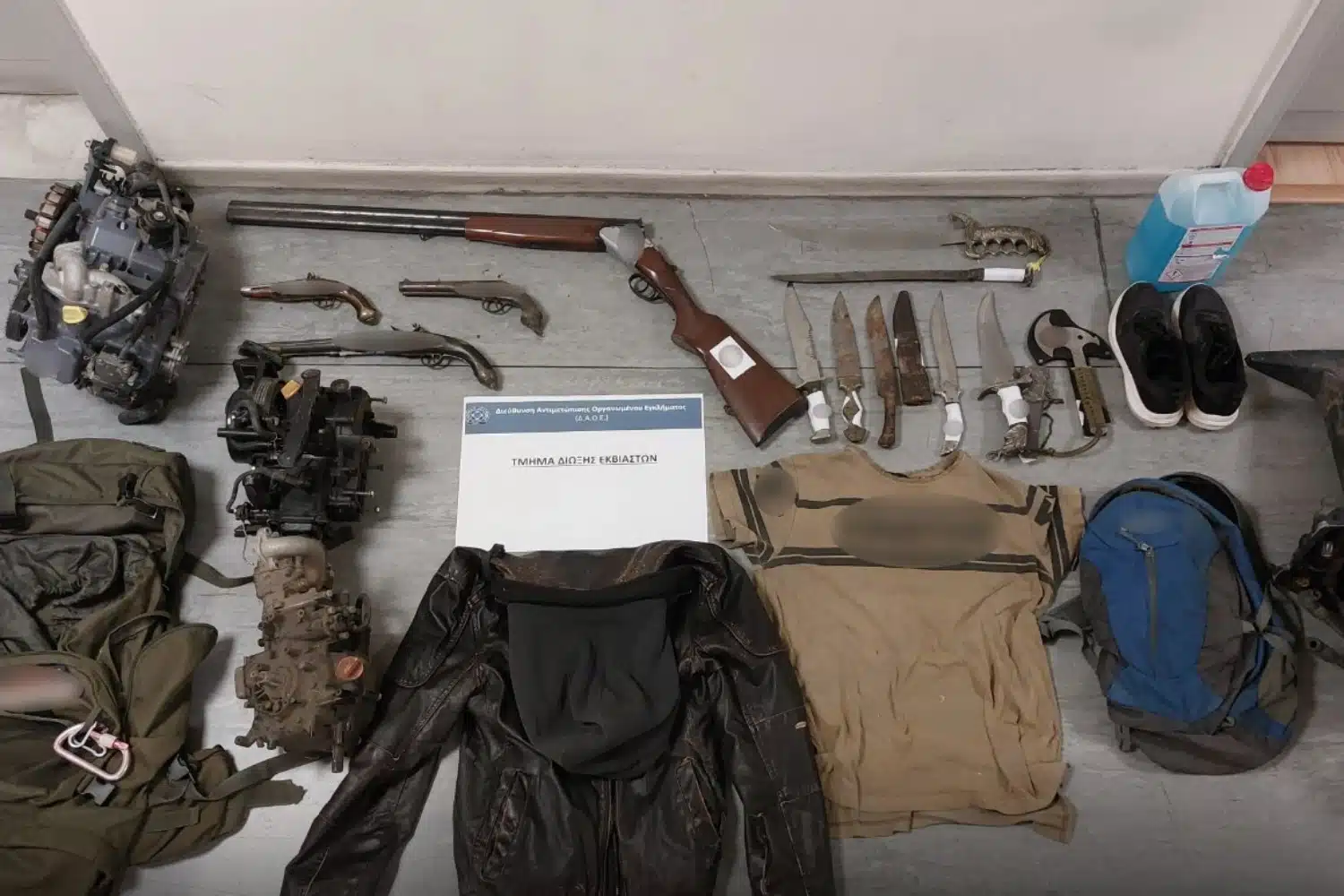 Συνολικά από τις έρευνες που πραγματοποιήθηκαν σε οικίες στη Νίκαια Αττικής και στο Λουτράκι Κορινθίας, βρέθηκαν και κατασχέθηκαν: