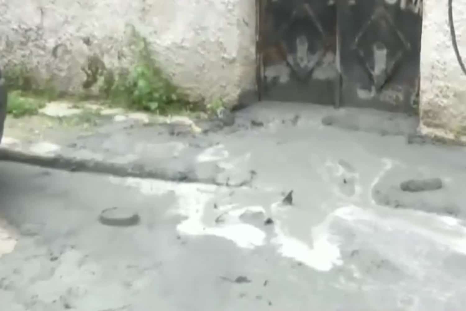 Το τσιμέντο παραμένει σε υγρή μορφή και αναβλύζει μέσα από το έδαφος στην αυλή του εγκαταλελειμμένου σπιτιού, προκαλώντας έκπληξη αλλά κι ερωτήματα στους κατοίκους της περιοχής, με κάποιους να συνδέουν το πρωτοφανές φαινόμενο με τα εν εξελίξει έργα στην περιοχή για τη γραμμή 4 του μετρό.