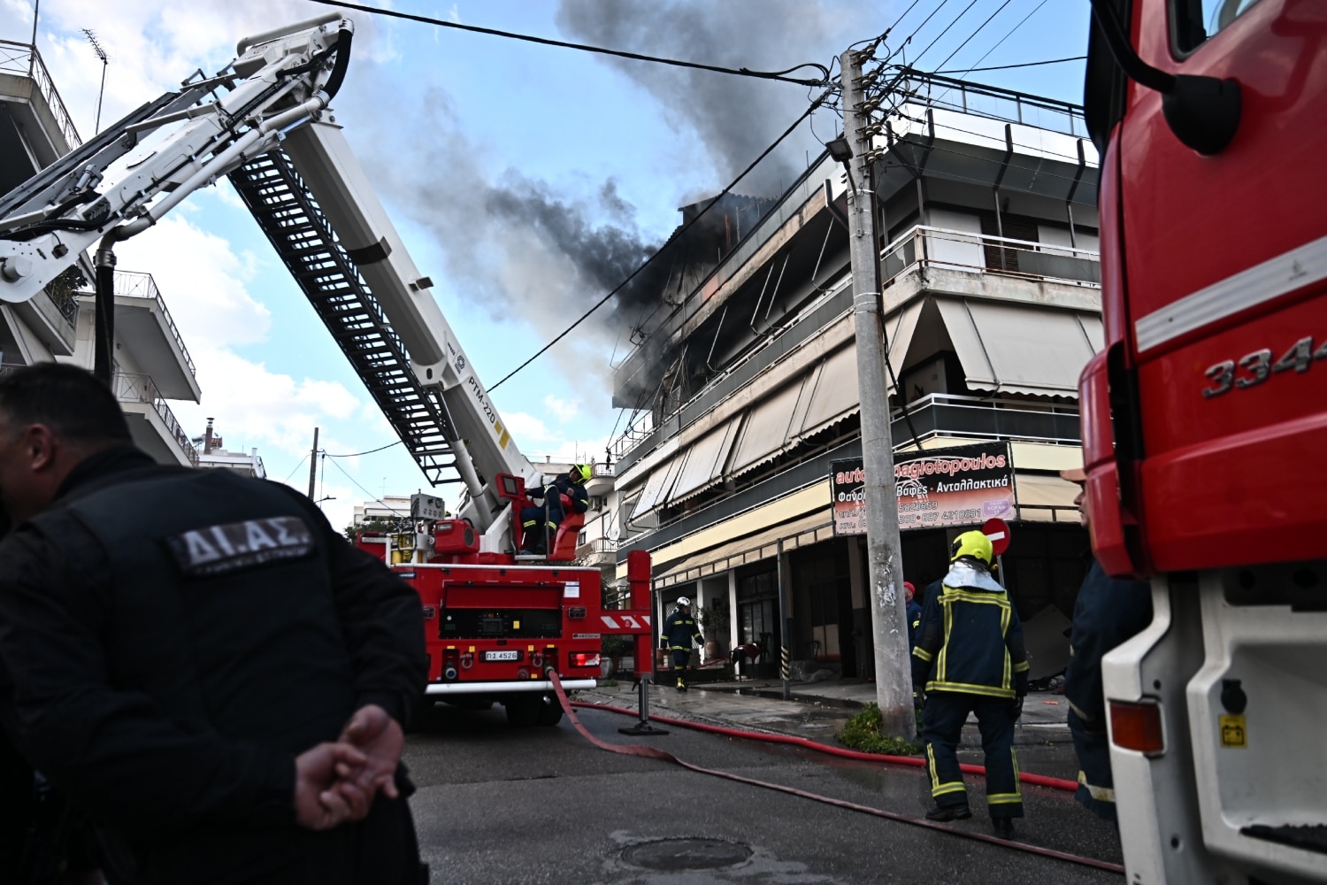 Σύμφωνα με την πυροσβεστική καίγονταν ο 2ος και ο τρίτος όροφος, ενώ στην ταράτσα βρίσκονταν δύο άνθρωποι οι οποίοι απομακρύνθηκαν από το σημείο λίγο μετά τις 15.00 το μεσημέρι.