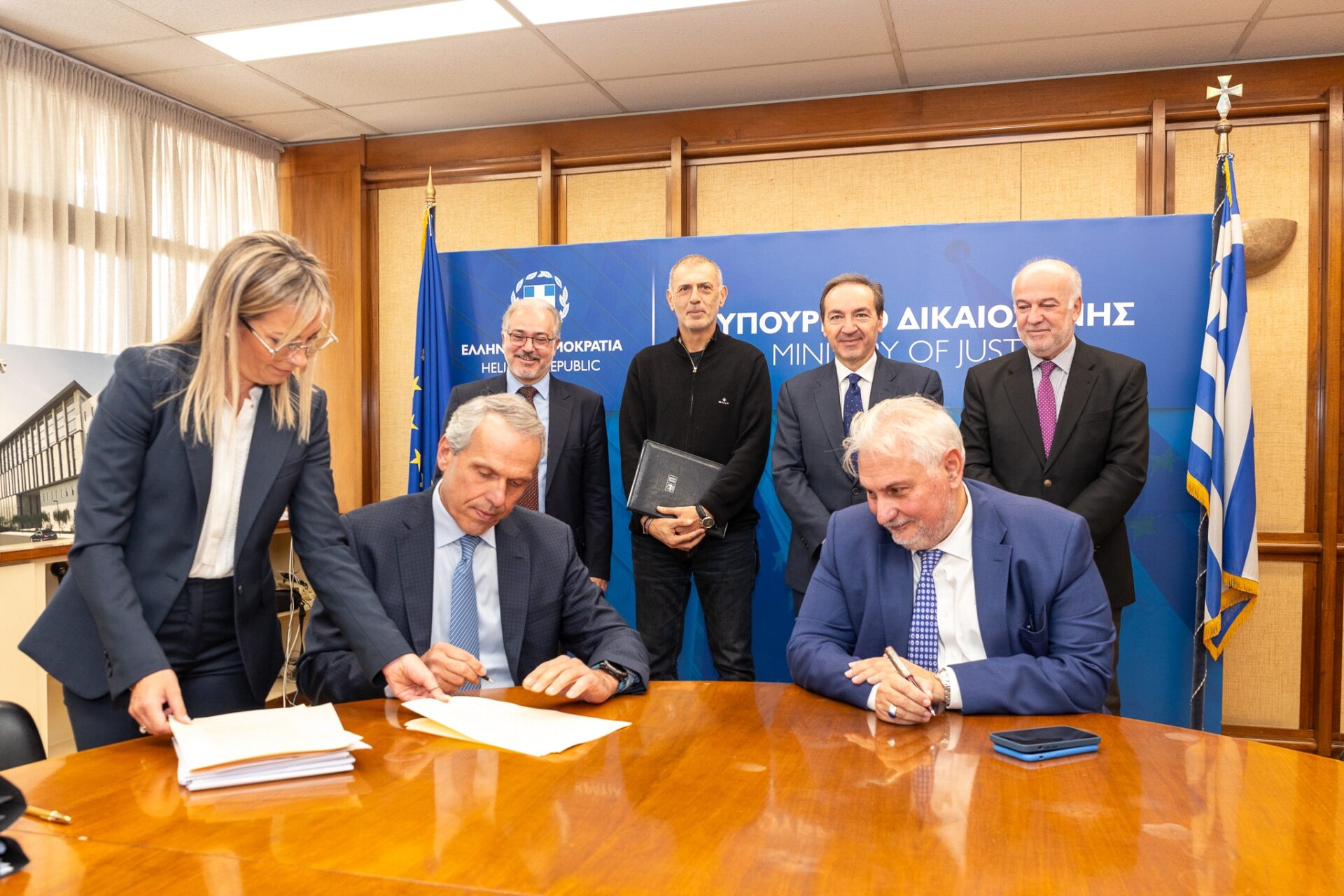 Υπεγράφη σήμερα (13/11), στο υπουργείο Δικαιοσύνης το οριστικό συμβόλαιο για την ανέγερση και αγορά από το Ταμείο Χρηματοδοτήσεως Δικαστικών Κτιρίων (ΤΑ.Χ.ΔΙ.Κ.) του νέου Δικαστικού Μεγάρου του Πειραιά.