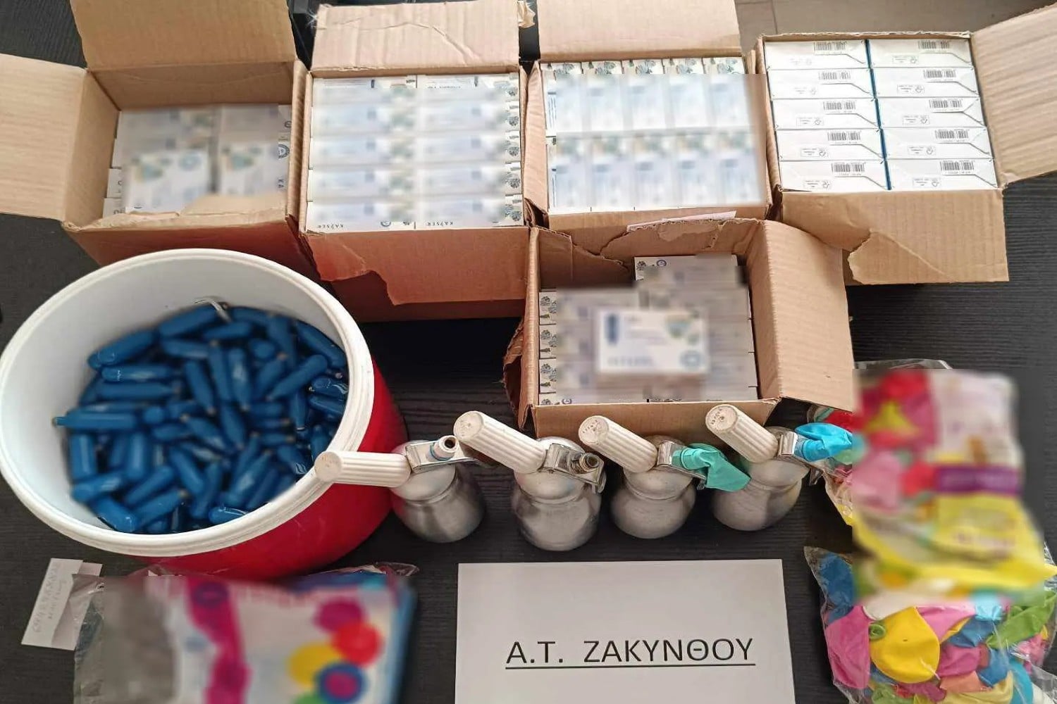 Ζάκυνθος: Χιλιάδες αμπούλες με αέριο γέλιου βρέθηκαν κατά τη διάρκεια ελέγχων της ΕΛ.ΑΣ. στον Λαγανά
