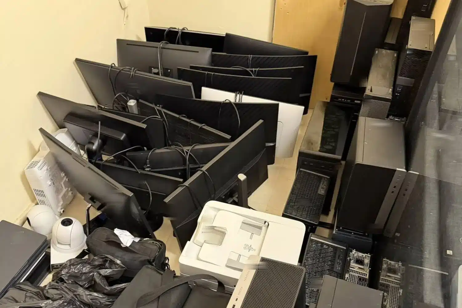 Εντοπίστηκαν και κατασχέθηκαν 34 μονάδες ηλεκτρονικών υπολογιστών, 7 λάπτοπ, 5 προτζέκτορες, 20 οθόνες και 10 πληκτρολόγια.
